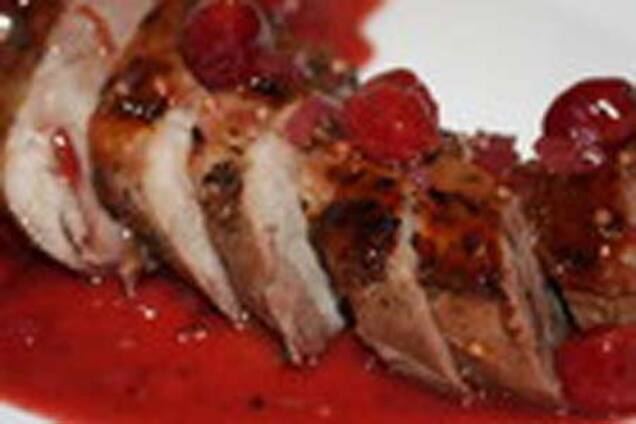 В кастрюлю влить апельсиновый сок, добавить ягоды и цедру апельсина. Соус варить на небольшом огне, пока он не уварится примерно в два раза (это займет около 20 минут). Затем его нужно остудить и добавить мед.