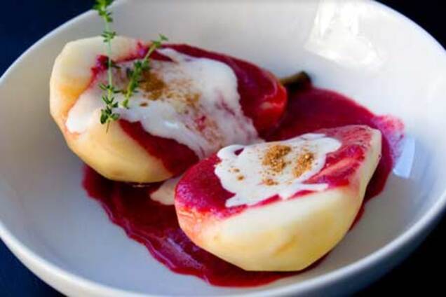 4. Смешать вино с портвейном и медом, полить груши. Добавить палочку корицы и гвоздику.